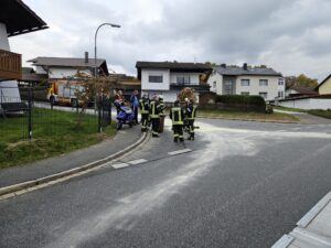 Am Freitag, 17. Oktober, wurde die Feuerwehr Zwiesel zu einem Verkehrsunfall mit einem Motorrad alarmiert. Ein Rollerfahrer war alleinbeteiligt gestürzt. Dabei traten Betriebsstoffe aus, die sich auf einer größeren Fläche verteilten.