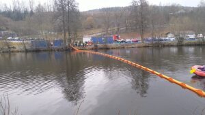 ABC – Öl Wasser – Ölsperreneinsatz am Regenfluss in der Stadt Regen