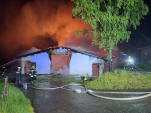 In der Nacht zum Pfingstsonntag sind Feuerwehren, Rettungsdienst und Polizei zu einem Brand in den Weiler Rittmannsberg in der Nähe von Schönau (Landkreis Regen) gerufen worden. Vermutlich hatte ein Blitz das Feuer verursacht. Ein Stallgebäude und eine Scheune brannten komplett nieder. Ein Übergreifen auf das angrenzende Wohngebäude konnten die Einsatzkräfte verhindern. Weder Personen noch Tiere wurden nach Angaben von Wolfgang Eberl, 1. Kommandant der Feuerwehr Wiesing, verletzt. Allerdings entstand nach Schätzungen der Polizei ein Sachschaden zwischen 250.000 und 300.000 Euro. In den Gebäuden waren unter anderem zwei Traktoren sowie weitere landwirtschaftliche Geräte, etwa ein Holzspalter, untergebracht.